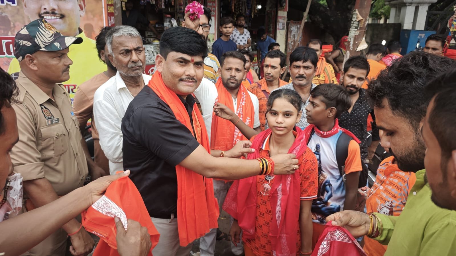 नगर पालिका अध्यक्ष ने कावरियों पर किया पुष्प वर्षा